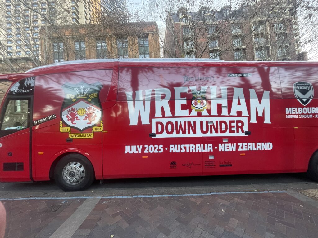 We stumbled across the Wrexham FC team (well their bus) – after flogging Victory last night in Melbourne I hope they are making new friends in Sydney tonight (but unlikely given the facts presented earlier).