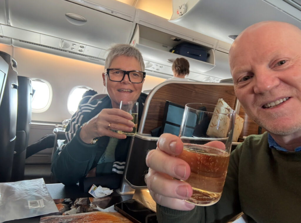 Smooth transfer and boarding – settled in with the obligatory champagne – ready for takeoff when it was announced that an engineering issue had emerged that may cause significant delay. Apparently the air bridge hit the plane when moving and engineers are now assessing the damage while Qantas staff in terminal are making tentative arrangements for us to disembark…. It was all going so well (and they aren’t refilling champagne)