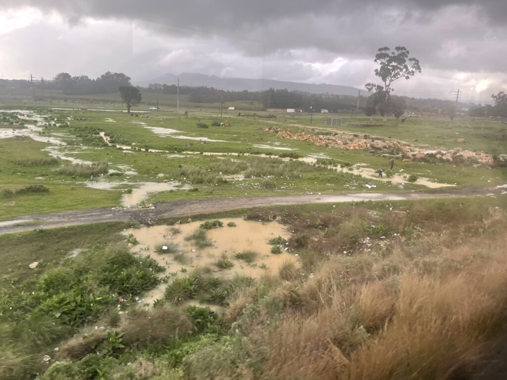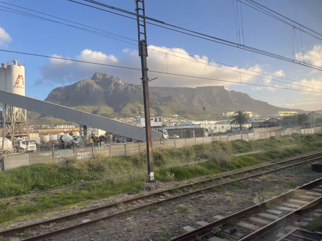 We did wake on Thursday morning to some quite amazing scenery as we got closer to Cape Town and we were informed we should be pulling in to the station at about midday, all going well. 5 minutes later we learnt that things hadn’t gone that well as we ground to another halt for several hours. As a few guests had planes to catch, arrangements were made for them to be evacuated from the train but as we weren’t near a station this was quite challenging.