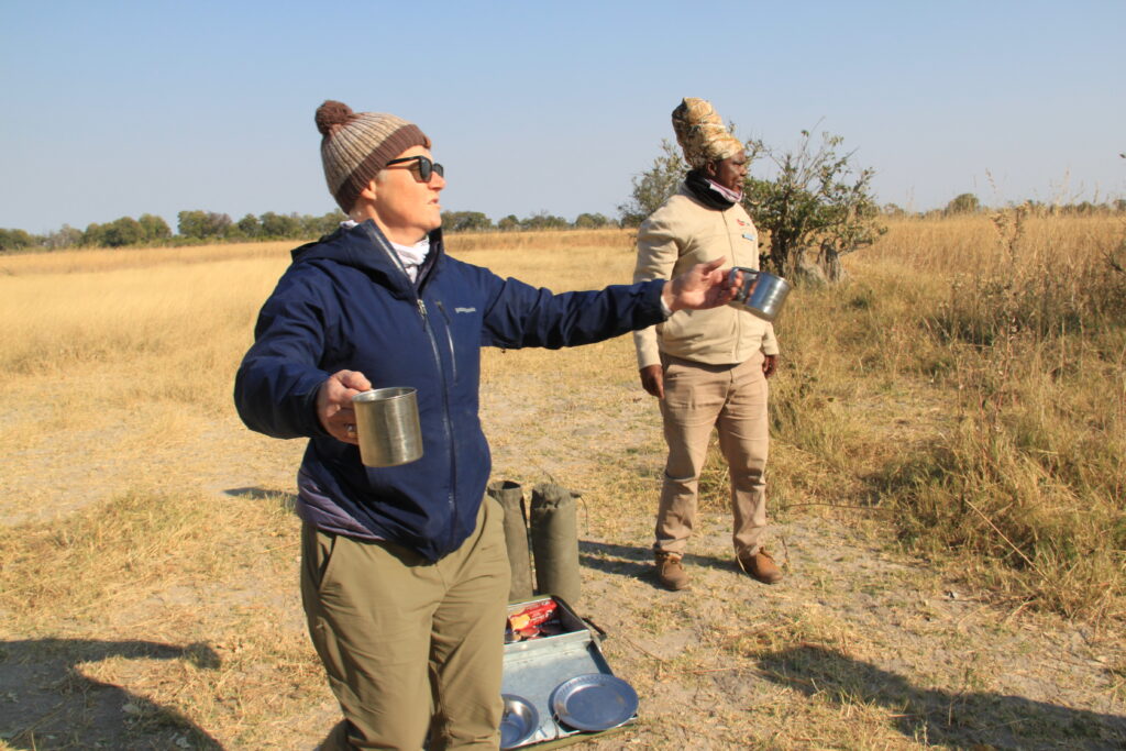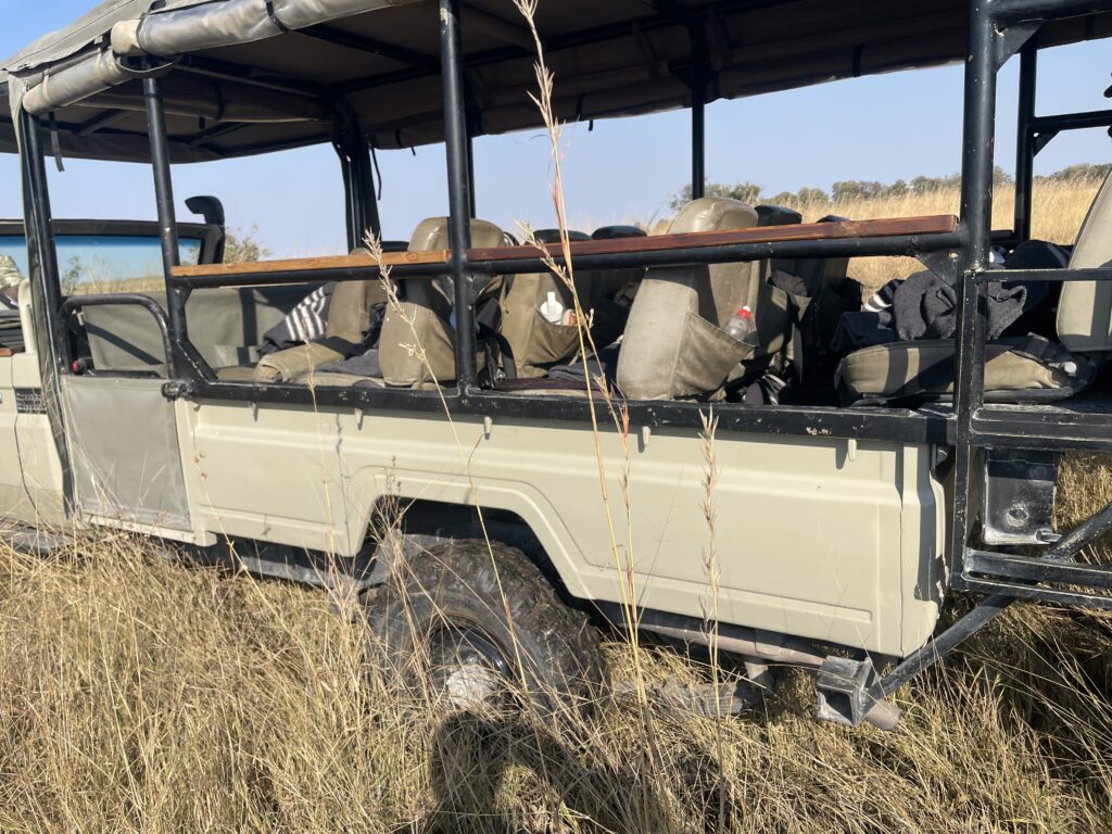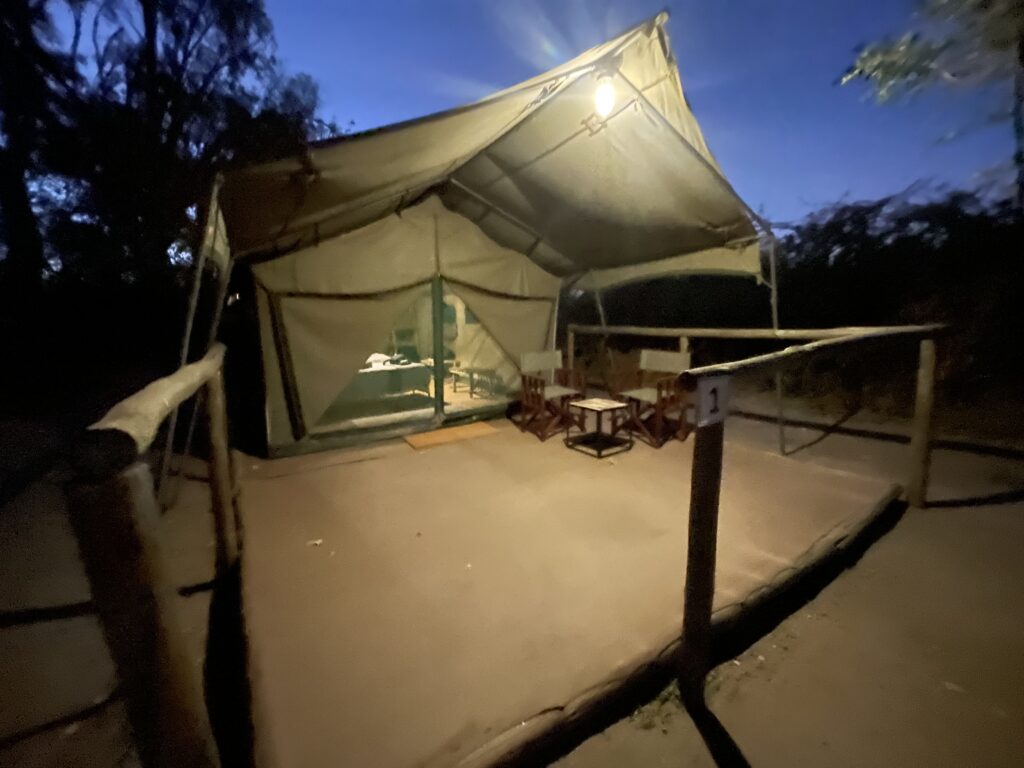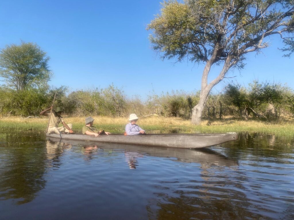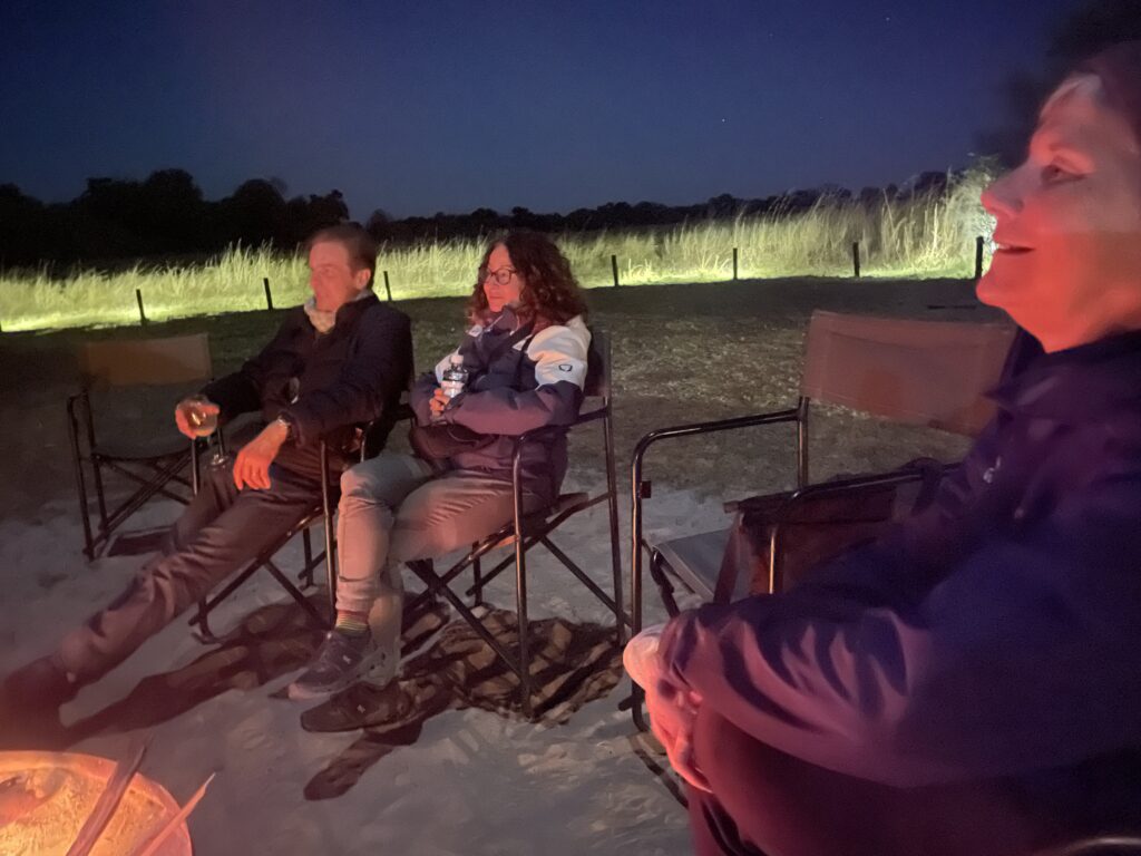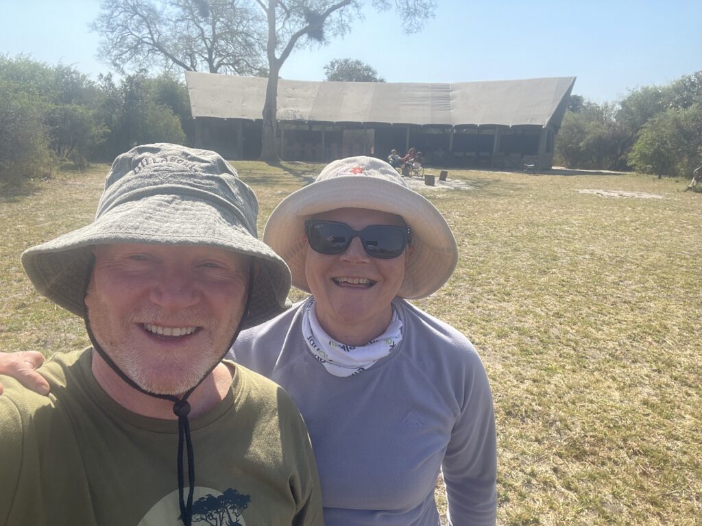 We then left our truck for a 4×4 safari vehicle for a 4-5 hour drive with our guide Matsaudi to our tented camp in the delta. Arriving as it was getting dark we were escorted to our tents for safety as we are in amongst lots of wildlife inc elephants hippos lions hyena and crocodiles. The camp was amazing – the best food we have had so far in africa (the bar isn’t high…. but ‘no moaning on the yacht’) a campfire facing the water where hippos wander past. Only down side was the huntsmen-like spiders living in our outdoor bathroom. This was 3 days with no wifi or phone coverage which was amazingly therapeutic!