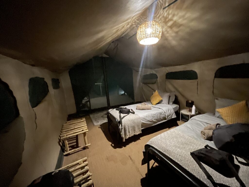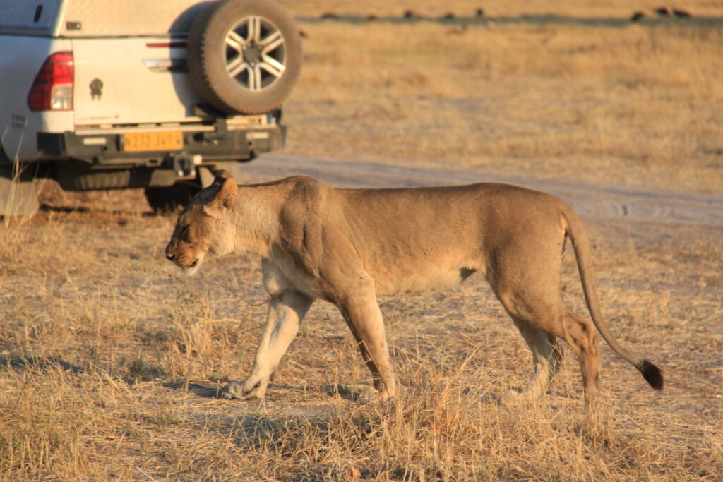 Thursday was a long drive back to Maun for a coffee and wifi catch up then an even longer drive to Elephant Sands – our last stop in Botswana. Had a couple of stops today for Foot and Mouth Disease control where we all had to disembark and walk through a disinfectant tray while the truck drove through the solution.