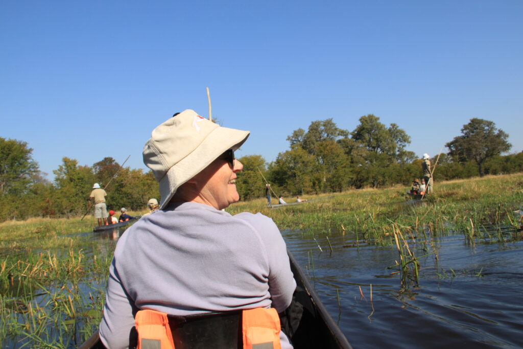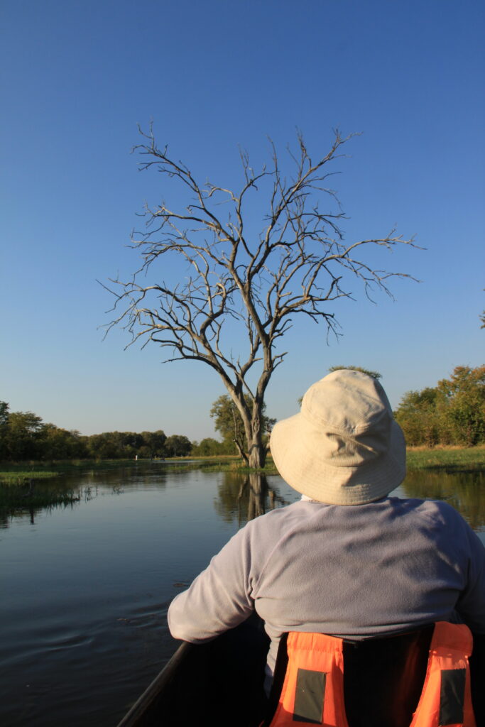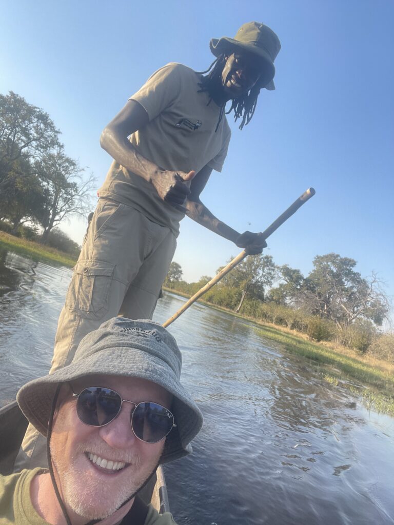 Back to camp for lunch and a much needed rest before an afternoon Mokoro ride gliding us through the waters of the delta. Our guides name was Green and he could name and describe every animal bird insect frog and plant we saw as well as keeping us from flipping the canoe when we saw elephants, water buffalo and hippo. It was so peaceful and beautiful.