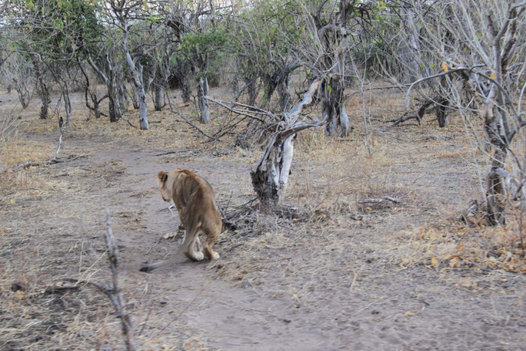 Next stop was Kasane which is a border town with Zimbabwe, Botswana, Namibia and Zambia and also gateway to Chobe National Park. Our optional early morning game drive on Saturday was fffreeezing! Wearing 5 layers of clothes each and a blanket did not seem to help! Fortunately we spotted 3 lions lazing around after about an hour. we drove a long way into the park without any excitement until we noticed some impala that seemed frozen to the spot. Suspecting that a predator may be nearby we investigated more closely and Steffen noticed some yellow fur hiding within a dense bush. It was a leopard and he wasn’t happy with us as he lay in wait for his breakfast! We watched as he exited the bush and started to creep up on the impala, but once they noticed him, and he lost the element of surprise, he decided to wander off and try his luck later on!